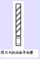 物料在蒸发器内的过流时间很短,小于10秒左右;对于常用的活动刮板而言,其刮动物料的端面有导流的沟槽(见图6),其斜角通常为45°,改变斜角的角度,可改变物料的过流时间,物料在刮板的刮动下,呈螺旋下降离开蒸发段。缩短过流时间,有效防止产品在蒸发过程中的分解、聚合或变质。